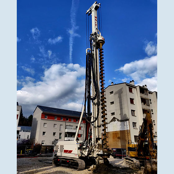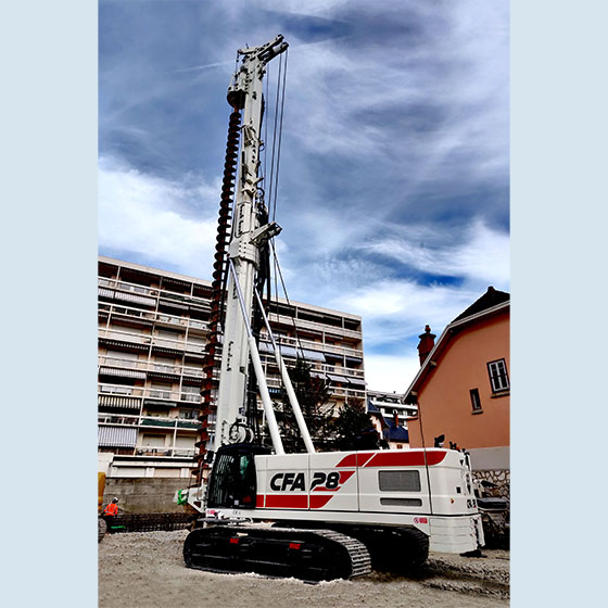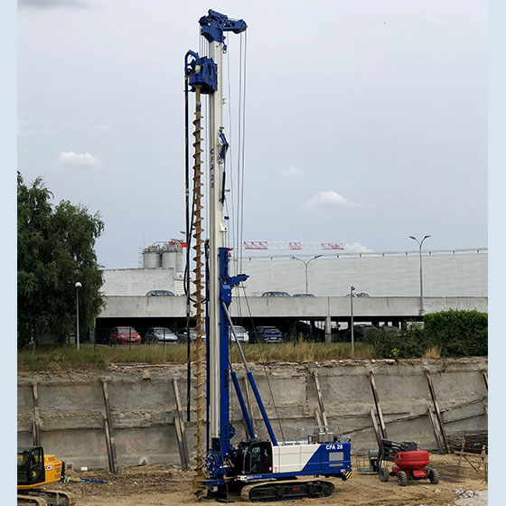 MAIT CFA 28 has been designed to operate with continuous auger, it is particularly compact and has a rather reduced weight. It is equipped with a telescopic mast which allows to reach a depth of 91.8 ft (with sliding pole) with 2.9 ft diameter. The machine can be transported fully assembled.